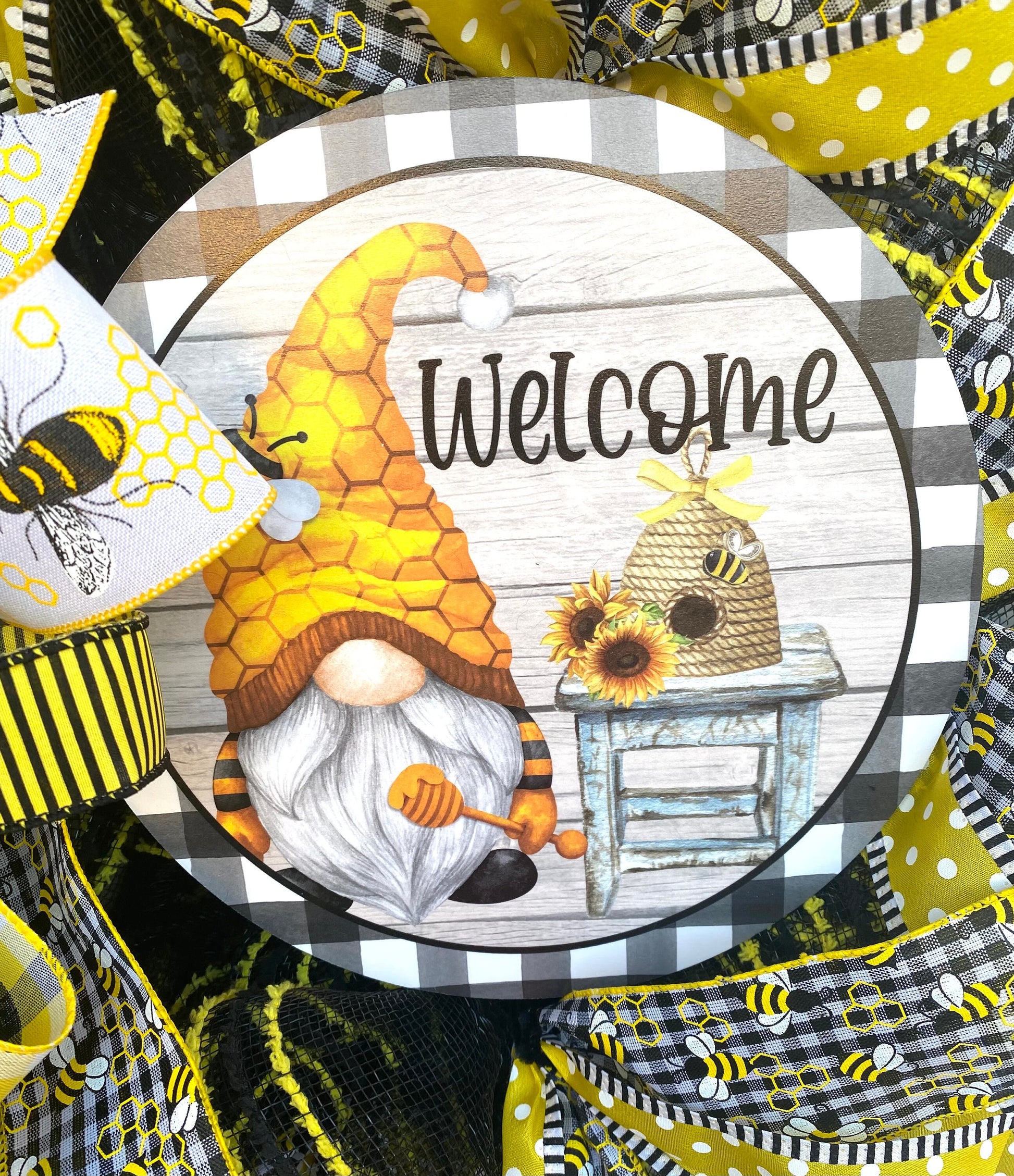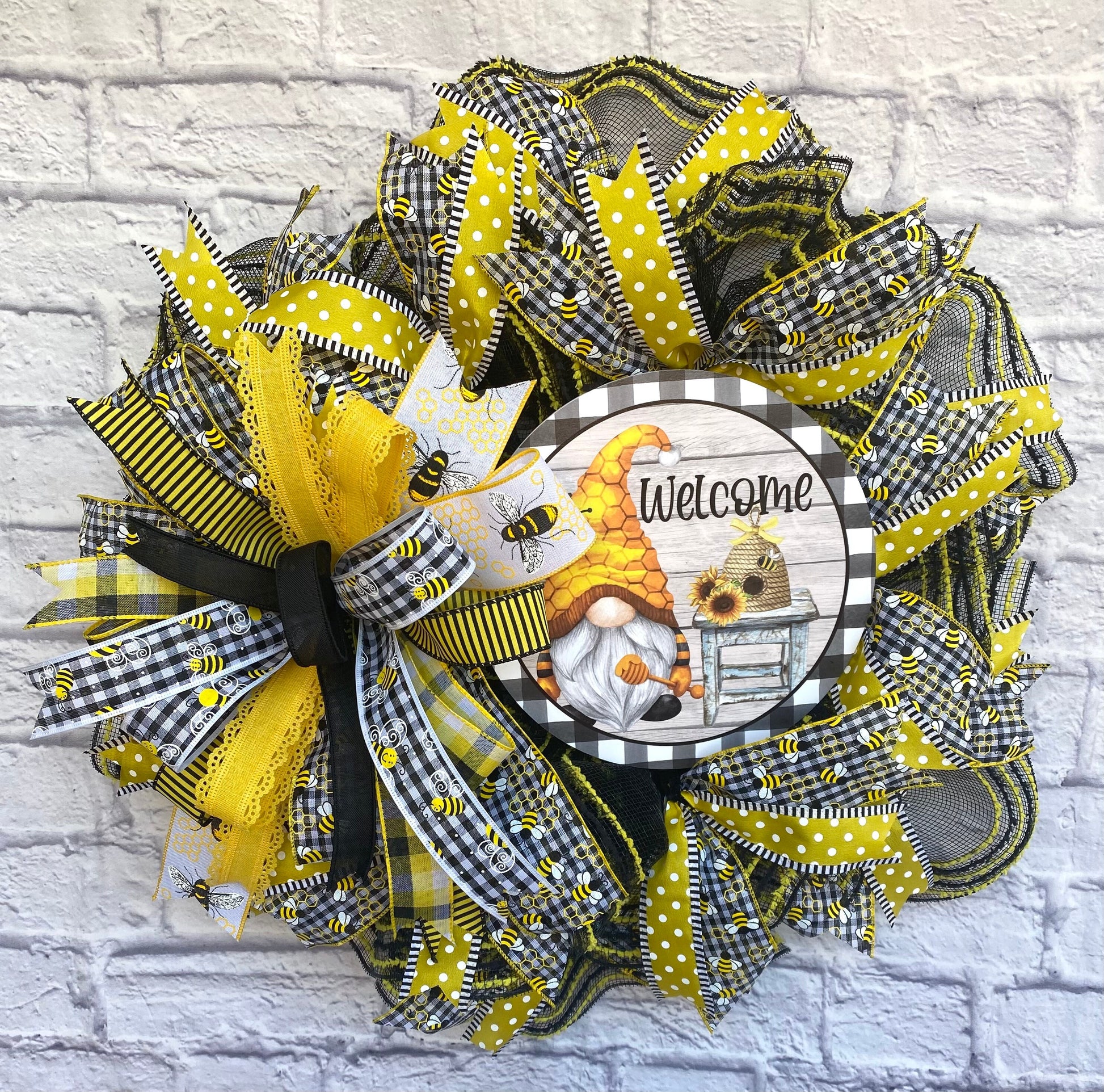 Bee Wreath for Door, Gnome Bee Wreath, Farmhouse Bee Wreath, Bee Door Hanger, Gnome Wreath for Door, Farmhouse Bee Door Hanger, Bee Wreath