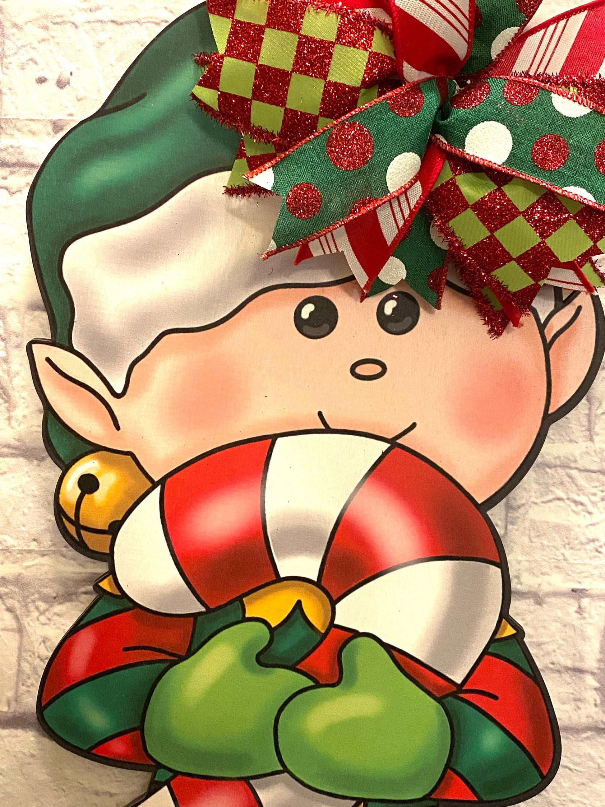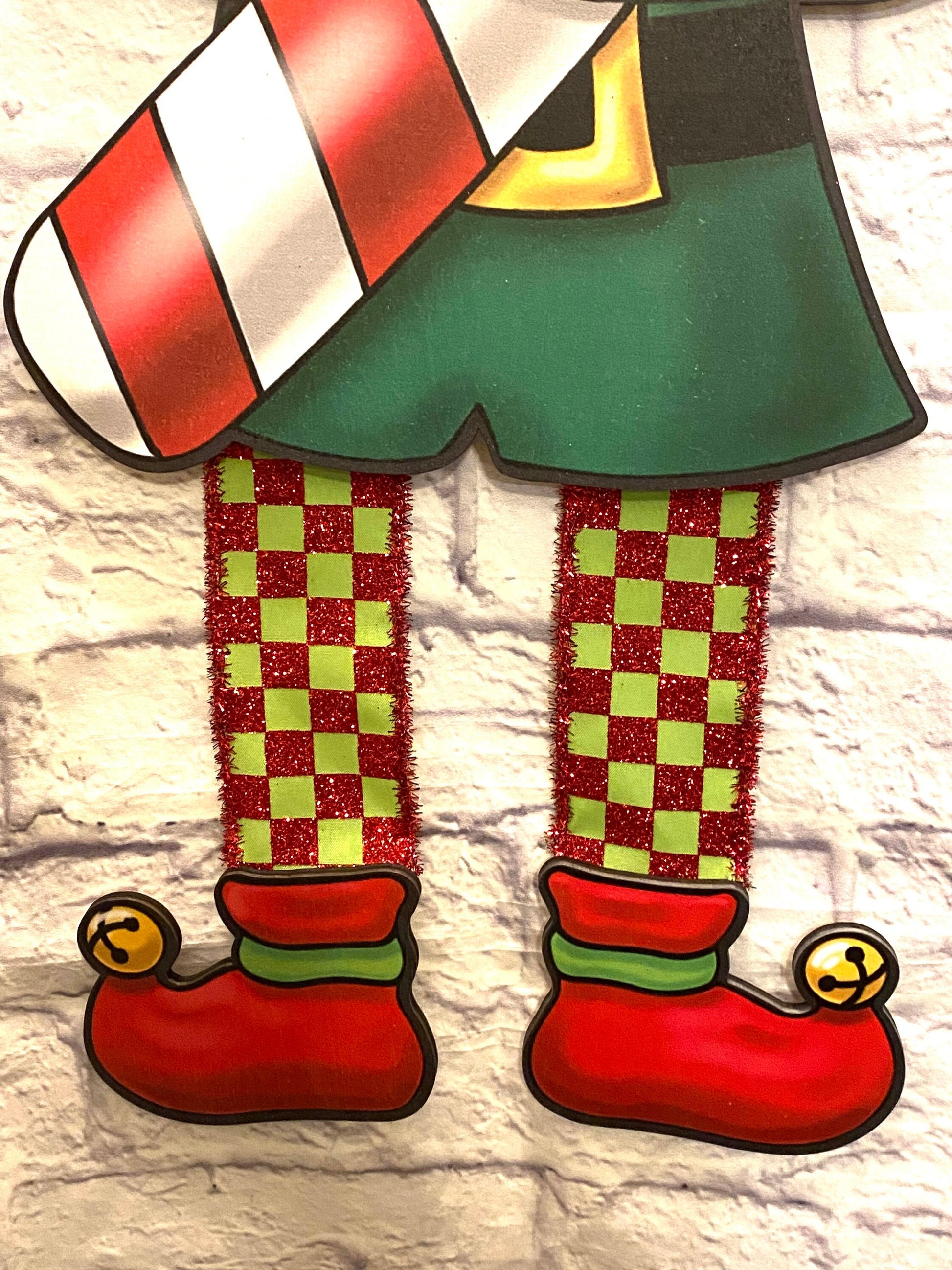 This fun Elf door hanger would be a great addition to your homes holiday decorations. It would look wonderful leaning on your hanging above the fireplace, on a wall, or front door during the holiday season. This would also be perfect for a Christmas, birthday, anniversary, housewarming, or a just because gift, or a gift to yourself.