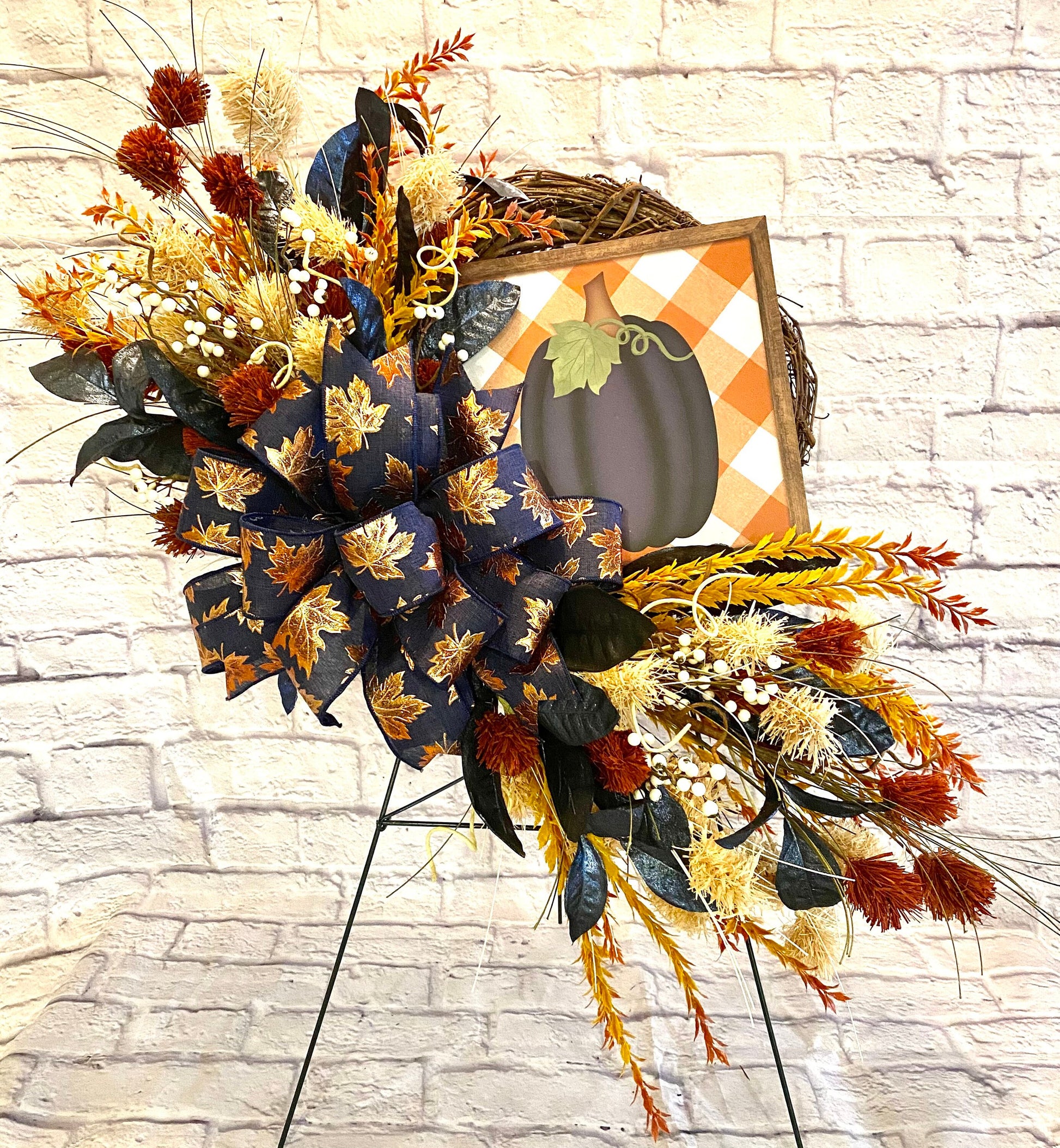 - Decorative Pumpkin Sign: A charming pumpkin sign, accented with a classic buffalo plaid pattern, is nestled within the wreath, making it an ideal piece for Thanksgiving and harvest celebrations.