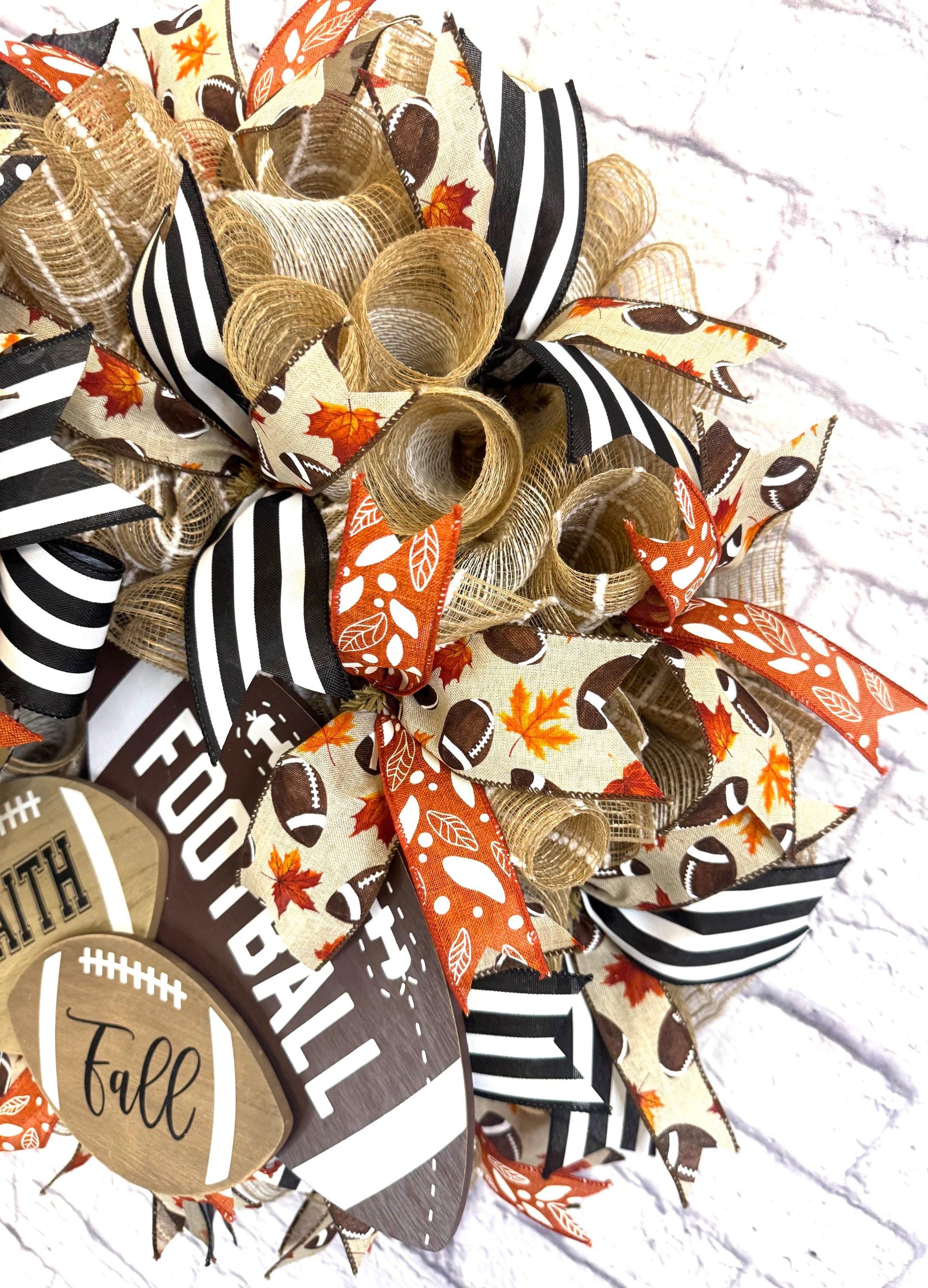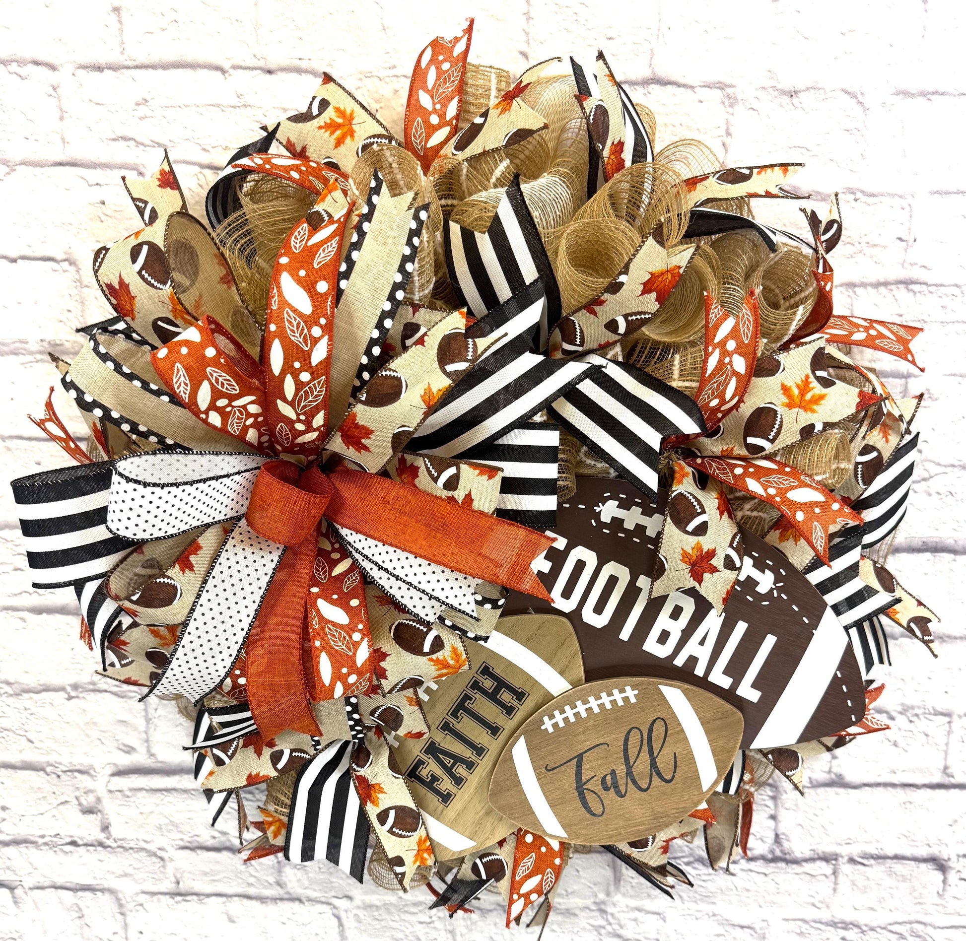 Faith Fall Football Wreath, Football Wreath for Front Door, Autumn Sports Fan Decor, Football Home Decor, Football Door Hanger