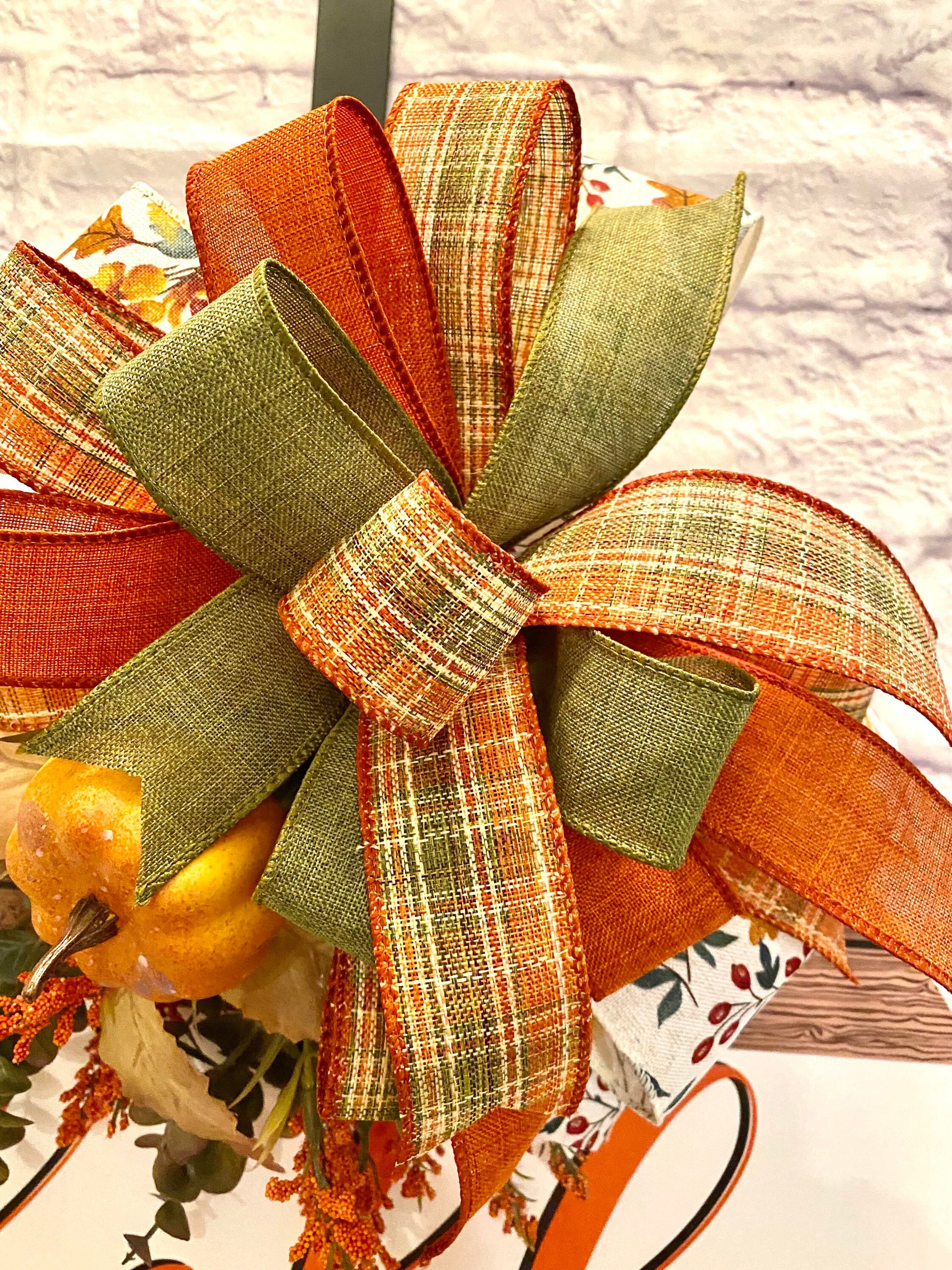 This Fall door hanger would be a great addition to your home or office fall decorations. It would look wonderful leaning on your fireplace mantle, or hanging above the fireplace, on a wall, your front porch, or front door during the fall season. This would also be perfect to be given as a birthday, anniversary, housewarming, a just because gift, or a gift to yourself.