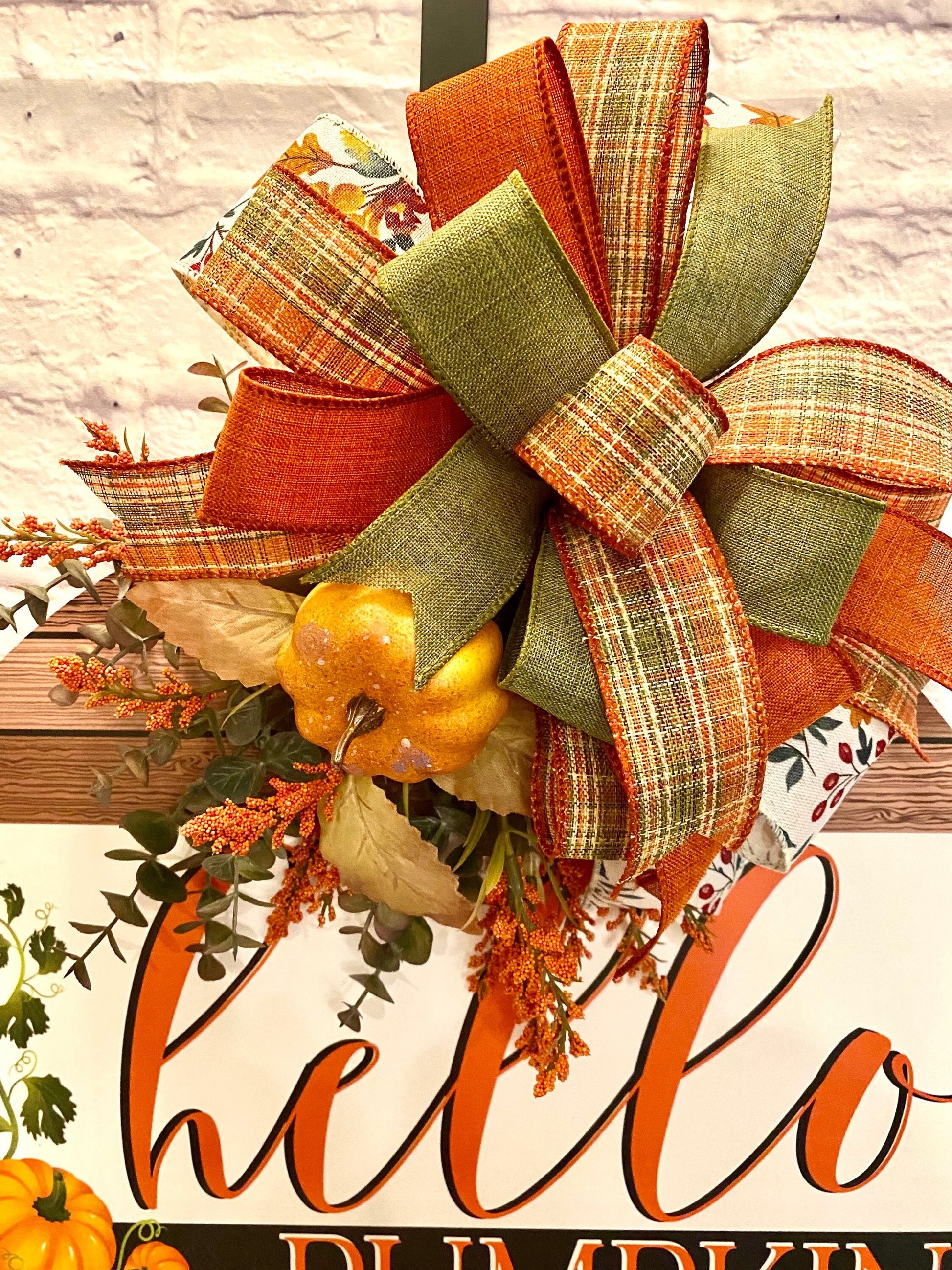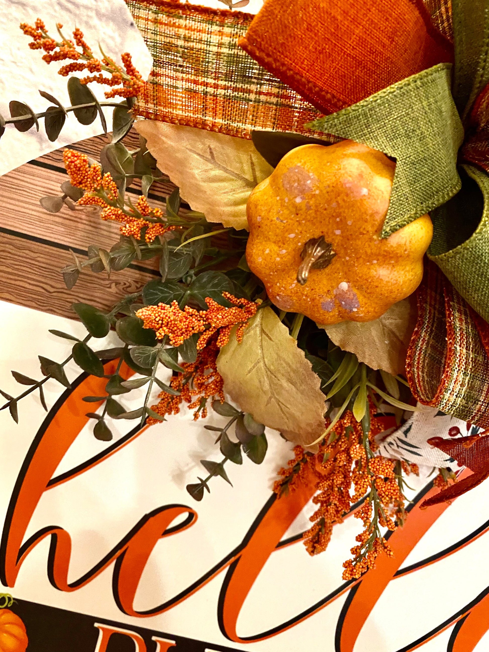Fall Hello Pumpkin Door Hanger, Fall Pumpkin Door Hanger, Fall Pumpkin Porch Decoration, Door Hanger with Pumpkin and Fall Florals