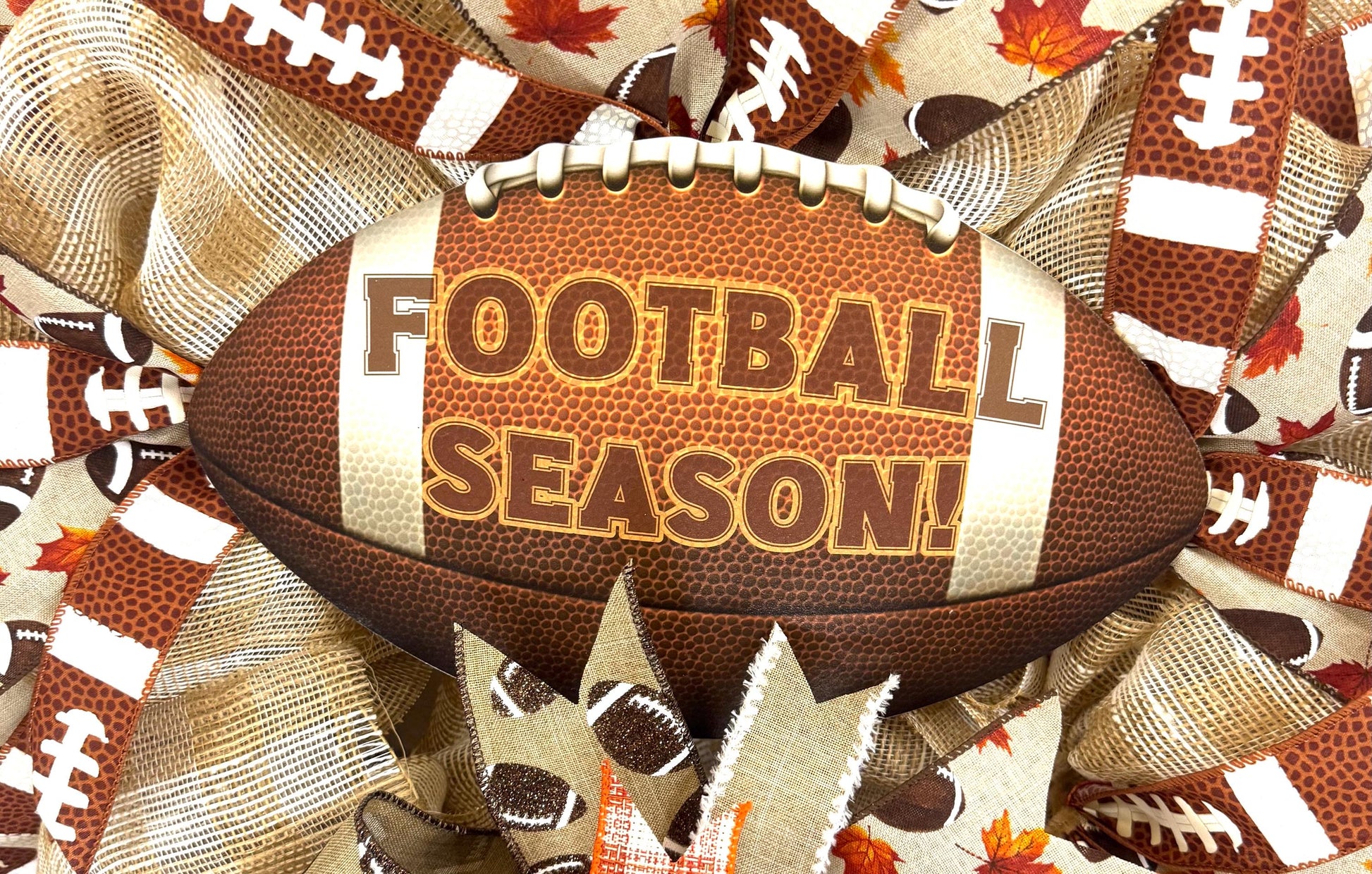 Celebrate your love for the game with this handmade Football Season Wreath! Designed with rustic fall tones and football-themed ribbon, this wreath makes the perfect statement for game days, tailgates, and fall gatherings.