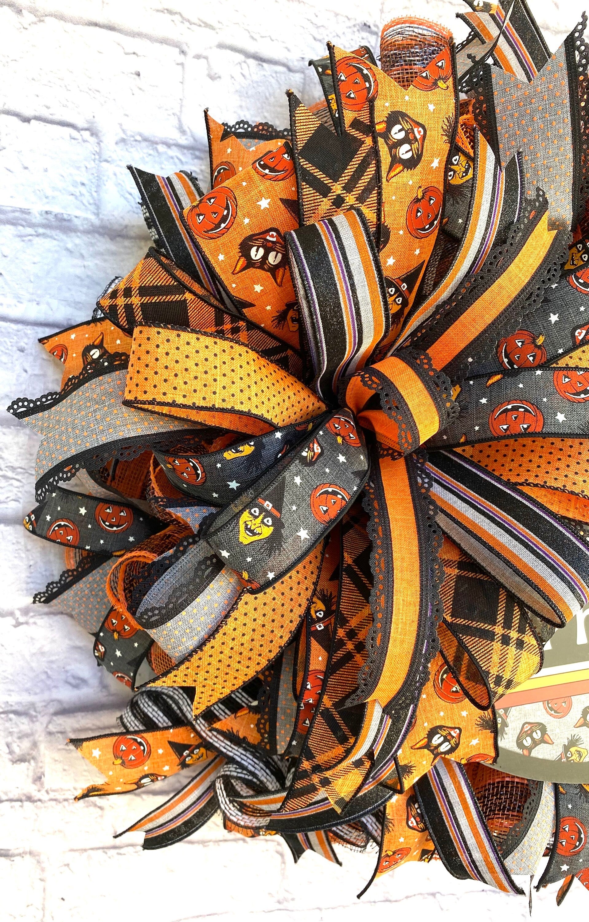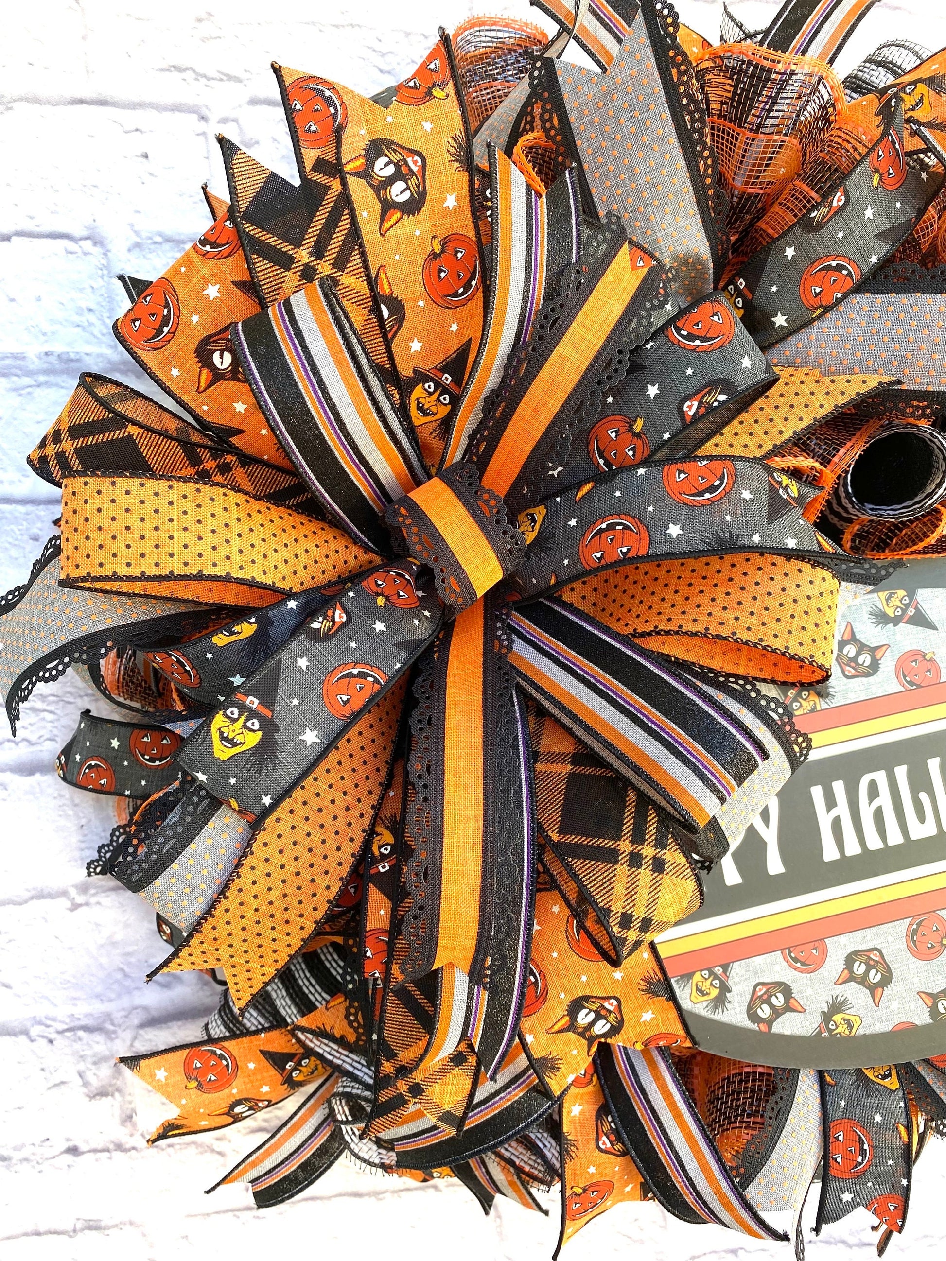 Welcome the spooky season with our handmade Happy Halloween wreath! This festive wreath is the perfect addition to your Halloween decorations, adding a touch of charm and a lot of personality to your front door.