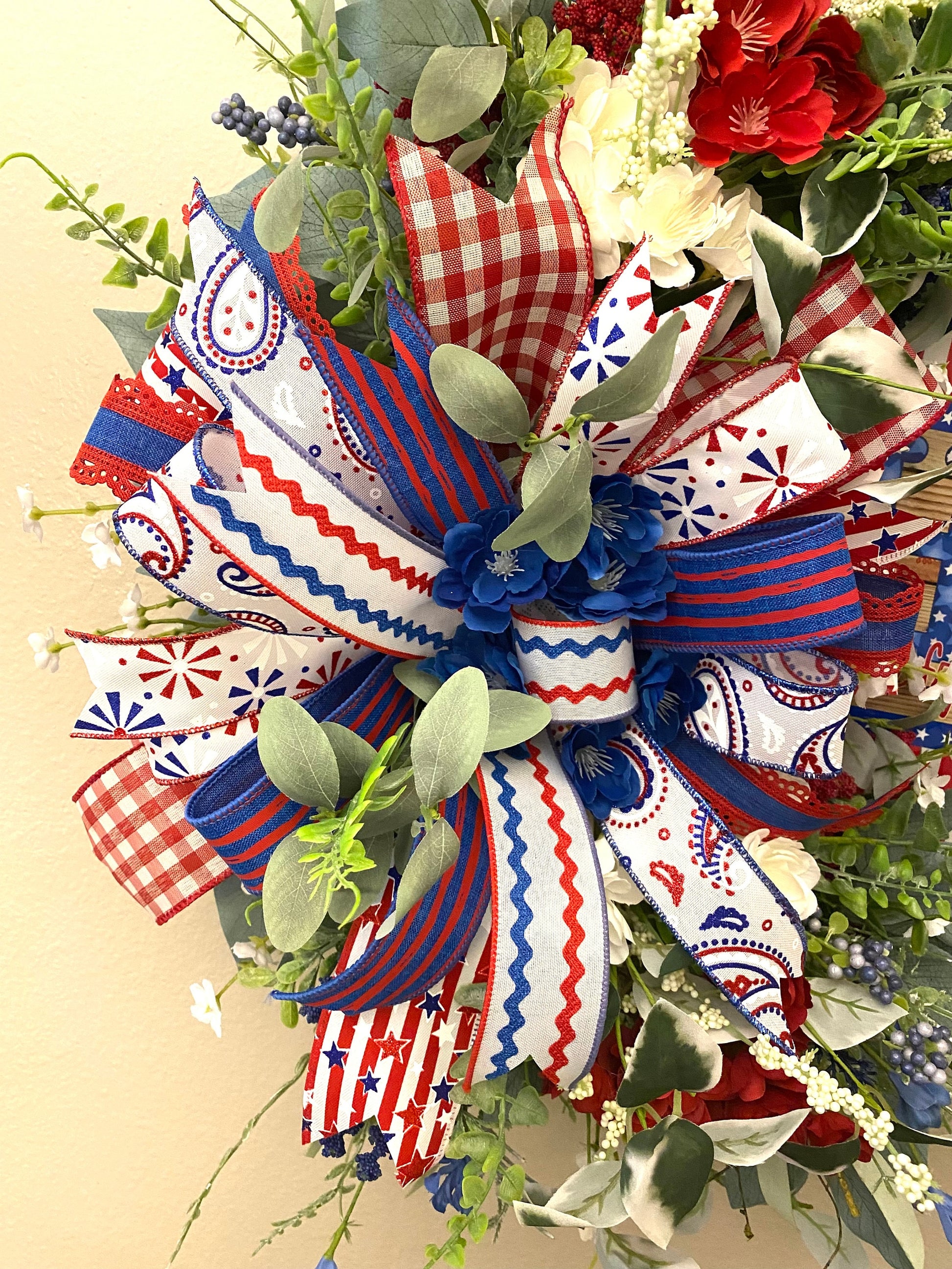 Patriotic Americana Wreath, Independence Day Wreath, Memorial Day Wreath, 4th of July Wreath, Floral Patriotic Wreath, Patriotic Wreath