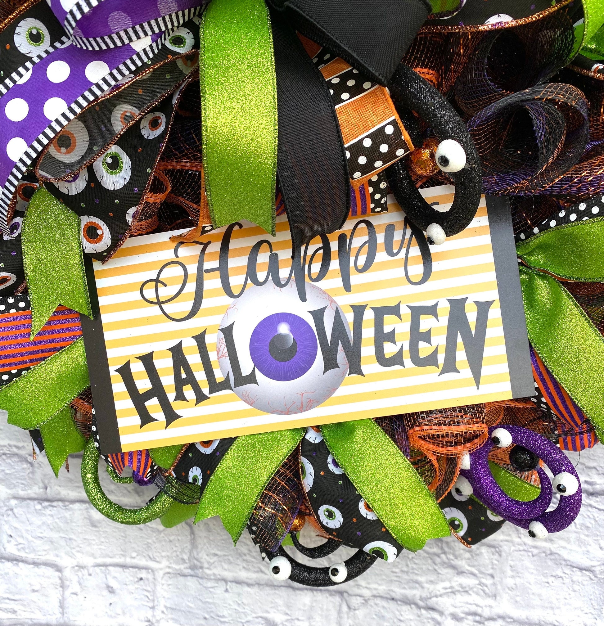 Whimsical Halloween Wreath, Happy Halloween Wreath, Whimsical Happy Halloween Wreath, Happy Halloween Door Hanger, Halloween Porch Decor