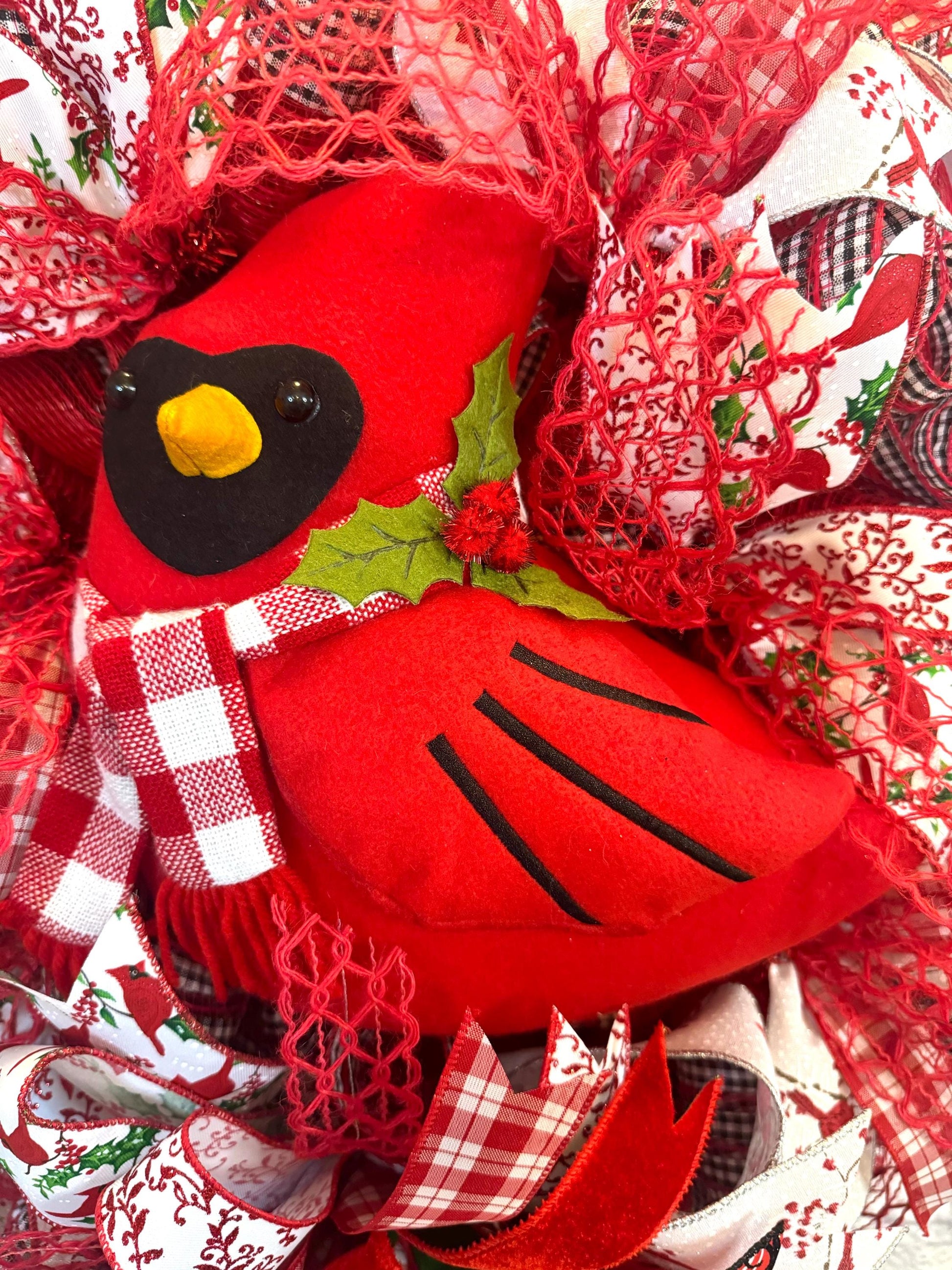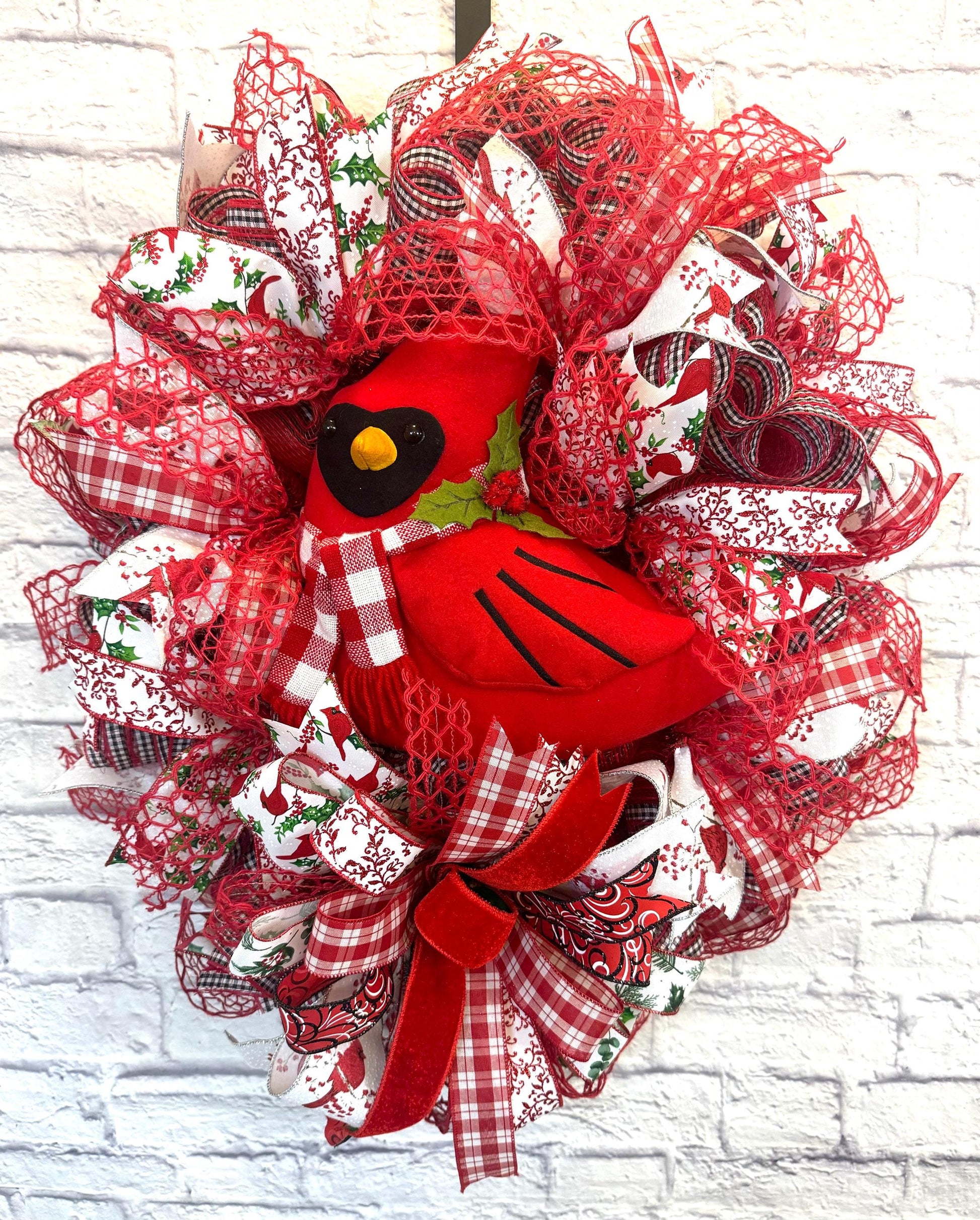 Winter Cardinal Wreath, Cardinal Wreath for Door, Winter Cardinal Home Decor, Cardinal Door Hanger, Festive Cardinal Christmas Wreath